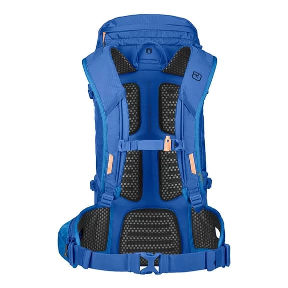 The Ortovox Traverse 30L backpack has a large main compartment, which can be accessed quickly through a circumferential zipper. It has other compartments in the pocket of the cover and inside the backpack, as well as a pocket with a slot in the front. The Traverse 30 includes features such as a rain cover, a smart hiking pole closure, hydration system compatibility, a hip pocket and a shoulder strap holder.Â