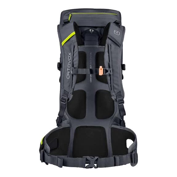 The Ortovox Traverse Dry 30L Backpack is designed for long excursions in the mountains, it is very resistant and waterproof. It has a spacious main compartment that offers plenty of space for gear, while smaller items can be quickly stowed in the slotted compartment at the front. This high mountain touring backpack will keep all your luggage dry thanks to the high frequency welding that makes all the seams waterproof. The particular advantage is that all the features work in any weather because the fixing options are not obstructed by a rain cover. The contact pads with the lightweight back system ensure permanent air circulation.